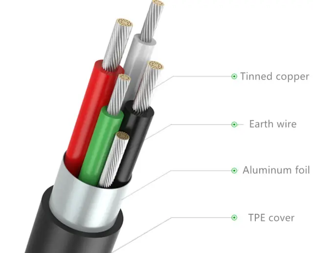 Materiali: aluminijeva zlitina s TPE, bakren kabel in pozlačen vmesnik