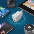 Omrežni polnilnik je združljiv z vsemi pametnimi telefoni in tabličnimi računalniki, opremljenimi z vrati USB tipa C. Tehnologija Qualcomm Quick Charge 3.0 napolni vašo napravo do 50 % v 15 minutah. Napajajte vse druge naprave z namenskim kablom prek univerzalnega USB izhoda. Enostaven za namestitev in uporabo, preprosto ga priključite v stensko vtičnico ali razdelilnik.