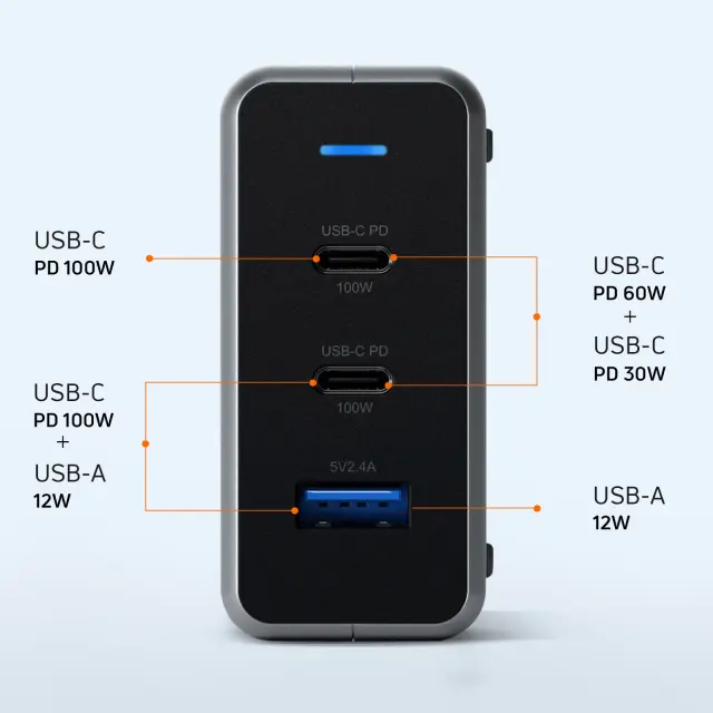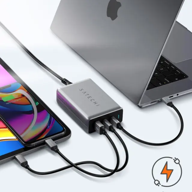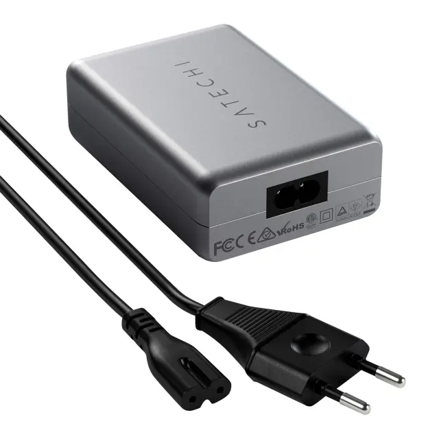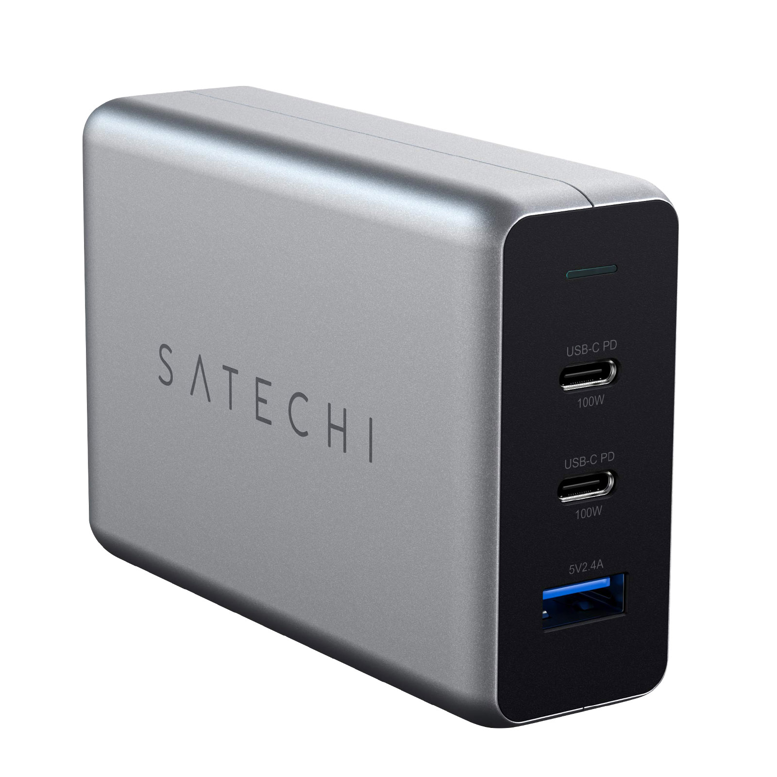 Satechi Omrežni polnilnik GaN 100 W, 2 USB C Power Delivery USB, omrežni kabel, siva
