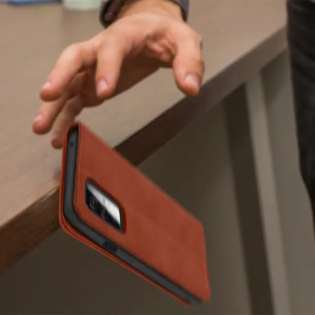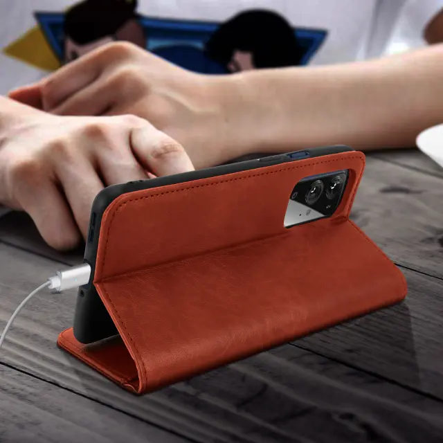 OnePlus 9 Folio Case Držalo za kartice in stojalo za video, serija Vintage - rjava