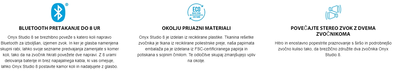 Uživajte v popolnem zvoku, kamorkoli vzamete glasbo. Ko vklopite, se Onyx Studio 8 samodejno umeri glede na svoje okolje, kar zagotavlja najboljši možni zvok, ne glede na to, kje ga postavite.