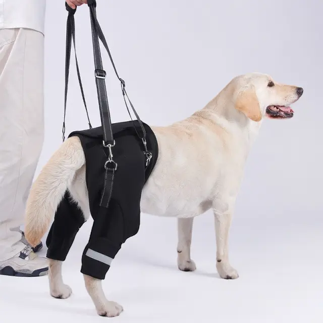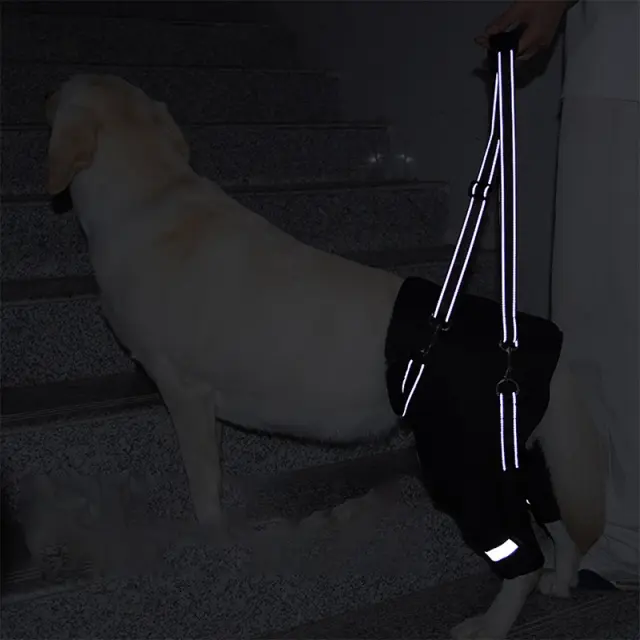 Izboljšana podpora mobilnosti: Ta pas za podporo zadnjih nog psov je zasnovan tako, da nudi izjemno podporo psom z omejeno mobilnostjo zaradi staranja, artritisa, displazije kolkov ali pooperativnega okrevanja. Pas nežno dvigne in podpira zadnje noge, kar vašemu ljubljenčku omogoča lažjo in udobnejšo hojo, plezanje po stopnicah in uživanje v aktivnostih na prostem. Pomaga zmanjšati obremenitev sklepov in mišic, spodbuja celjenje in izboljšuje splošno kakovost življenja. Idealen za rehabilitacijo in pomoč psom s šibkimi ali nestabilnimi zadnjimi nogami, ta pas ponuja praktično rešitev za ohranjanje aktivnega življenjskega sloga.
