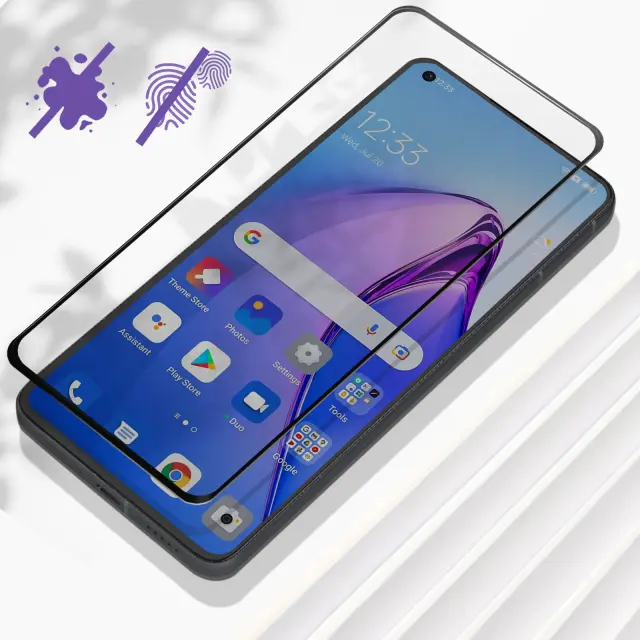 Ta folija za zaslon Oppo Reno 8 5G s crnim obrisom je narejena iz prozornega in odpornega kaljenega stekla. Folija z indeksom trdote 9H, ki absorbira udarce in praske. Njegov oleofobni premaz proti prstnim odtisom nudi udobje pri uporabi.