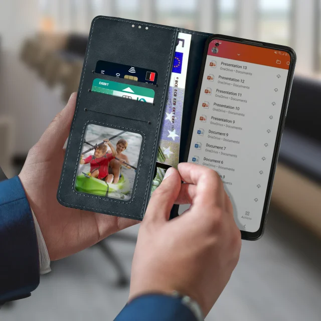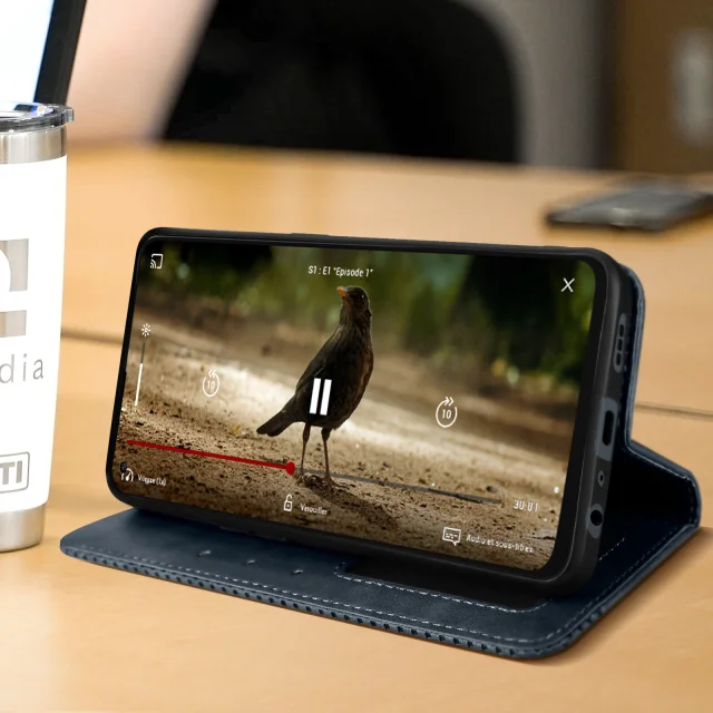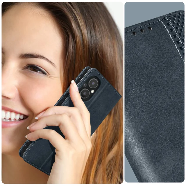 Oppo Reno 8 Lite 5G torbica z magnetom na preklop, držalo za kartice in video držalo - polnocno modra