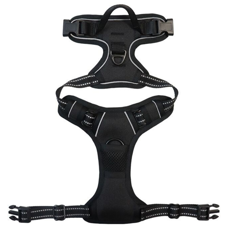 Udobno in zračno: Zavedamo se pomena udobja za vašega ljubljenčka. Poliestrski material, uporabljen v pasu, je mehak in zračen, kar preprečuje neudobje med dolgotrajno uporabo.