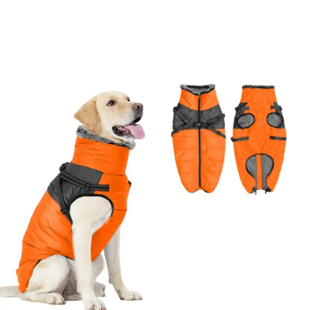 Oranžni Zimski Plašč za Pse z Runo - Odporen na Veter in Topel XL