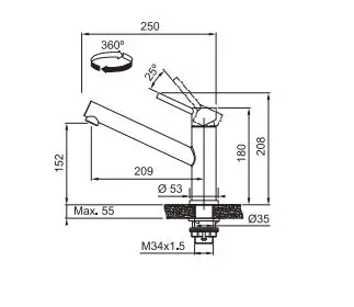 Orbit Model Armatura: kuhinjska armatura Izpust vode: s fiksnim izlivom z vrtenjem Vrsta perlatorja: laminarni Radij vrtenja: 360° Material: nerjaveče jeklo Upravljanje armature: upravljanje od zgoraj Pretok vode: 13 l/min (3 bar) Povezovalne cevi: 450 mm