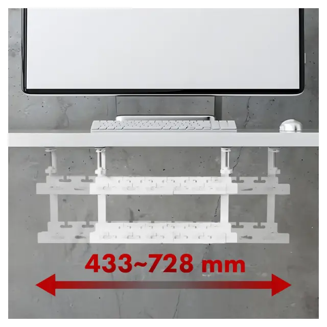 Visokokakovosten dvoetažni organizator za montažo pod mizo Maclean MC-102W. Idealen za električne razdelilnike in upravljanje kablov.