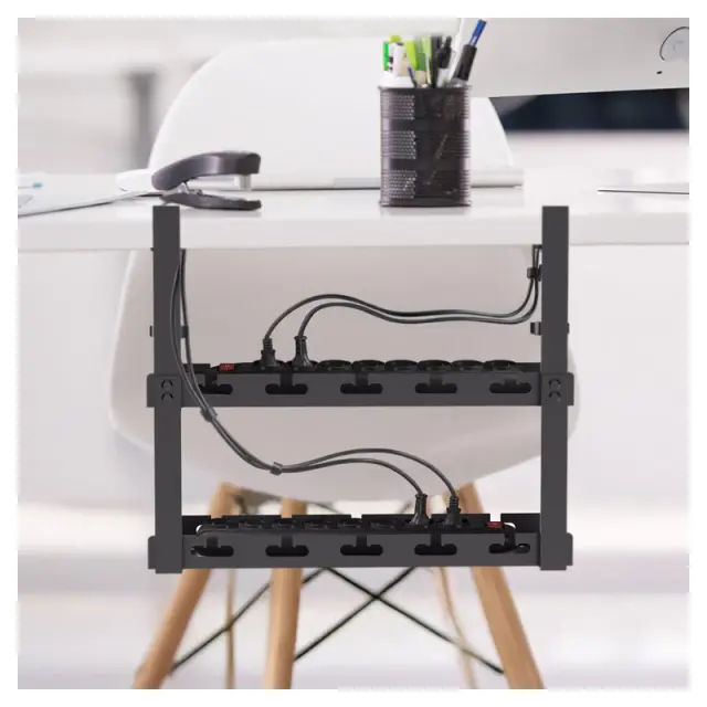 Visokokakovosten dvoetažni organizator za montažo pod mizo Maclean MC-104B. Idealen za električne razdelilnike in upravljanje kablov.