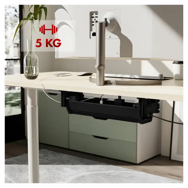 Visokokakovosten organizator za montažo pod mizo Maclean MC-106B. Organizator je mogoče namestiti na dve različni višini, kar vam omogoča, da ga prilagodite svojim individualnim potrebam. Dodatna prednost organizatorja je enostaven sistem odpiranja, ki omogoča hiter dostop do kablov, ne da bi bilo treba odstraniti celoten element.