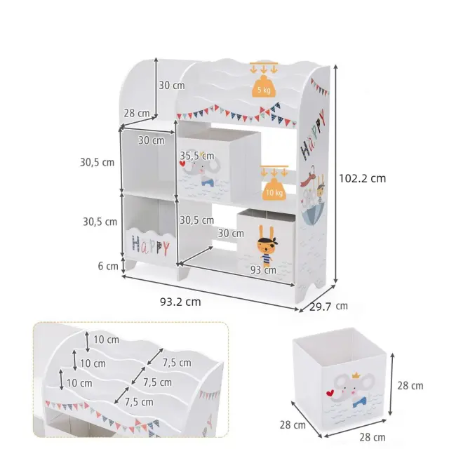 Organizator v omari za igrače in knjige 93 x 30 x 102 cm