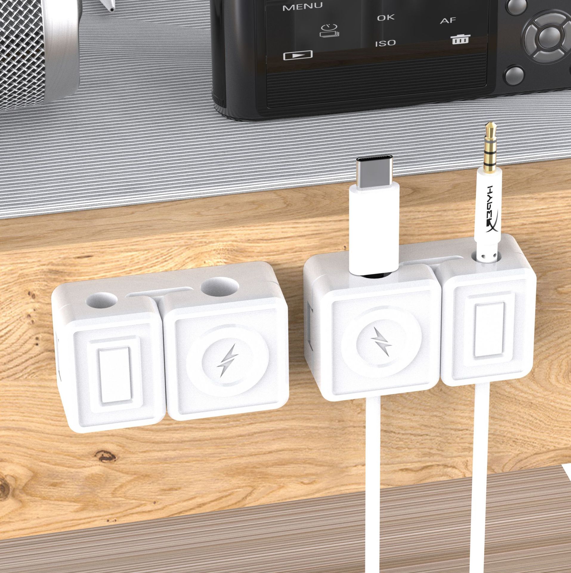 Organizator za kable z magnetom, 2 kosa, dvostranski lepilni trak White