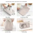 Vsak organizator je sestavljen iz visokokakovostnega in trpežnega tekstilnega materiala. Omogoča preprosto organiziranje velikih in majhnih oblačil, čevljev in spodnjega perila ter omogoča optimalno izrabo prostora v kovčku.