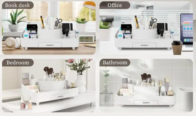 Organizator KOSEYA predstavlja popolno kombinacijo praktičnosti in stila, saj z vrtljivim sistemom in več predelki poskrbi za brezhibno organizacijo vaših najljubših izdelkov. Zaradi trpežnih materialov in elegantne oblike je primeren za dolgotrajno uporabo v različnih prostorih. Zagotovite si svojo urejeno toaletno mizico in izberite ta funkcionalen pripomoček za vsakdanjo uporabo ali kot pozorno darilo.