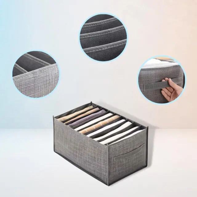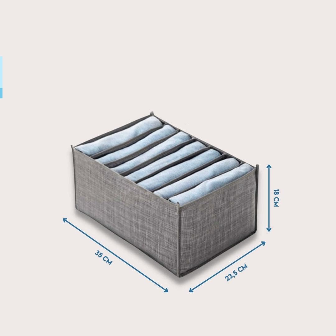 Organizator za predale predstavlja praktično rešitev za vzdrževanje urejenosti v vaših omarah in predalih, saj učinkovito preprečuje mečkanje ter mešanje različnih kosov oblačil. Izdelek omogoča sistematično razvrščanje garderobe glede na barvo, vrsto materiala ali letni čas, kar zagotavlja hiter dostop do želenih predmetov brez nepotrebnega iskanja. Izdelan je iz kakovostnih in trpežnih materialov, ki so odporni na obrabo in zasnovani za dolgotrajno uporabo v vsakem gospodinjstvu. Njegova nevtralna siva barva se diskretno vključi v notranjost vsake garderobne omare ali predalnika.