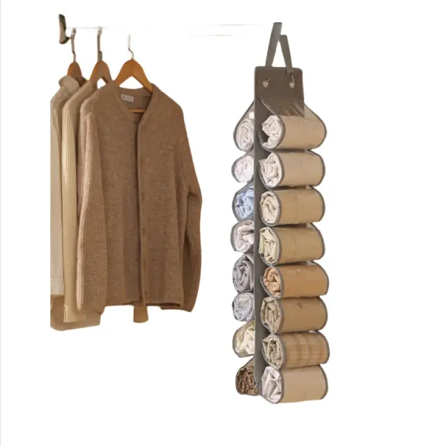 Vsestransko shranjevanje: Ta organizator ni samo za spodnje perilo! Uporabite ga za shranjevanje različnih majhnih predmetov, kot so nogavice, kravate, nakit, šali, pripomočki za ustvarjanje ali celo majhne igrače. Številni predelki zagotavljajo dovolj prostora za razvrščanje in organiziranje različnih predmetov. Obesite ga v omaro, kopalnico ali pralnico za priročno shranjevanje, kjer koli ga potrebujete. Zaradi svoje vsestranskosti je dragocen dodatek k vsakemu sistemu organizacije doma, saj vam pomaga ohranjati vaše stvari urejene in dostopne.
