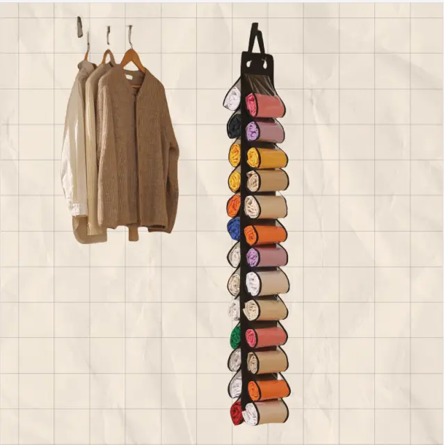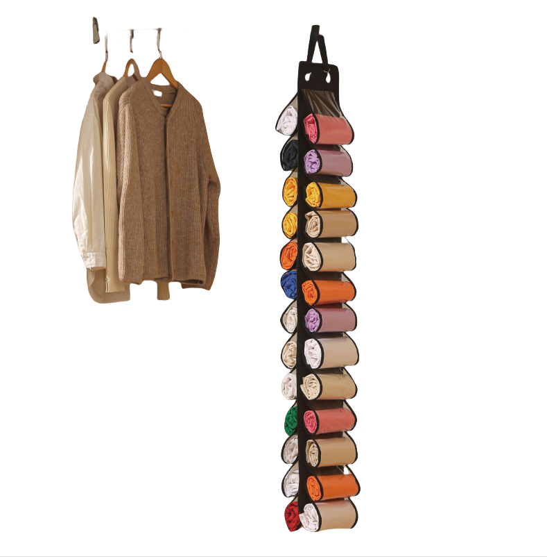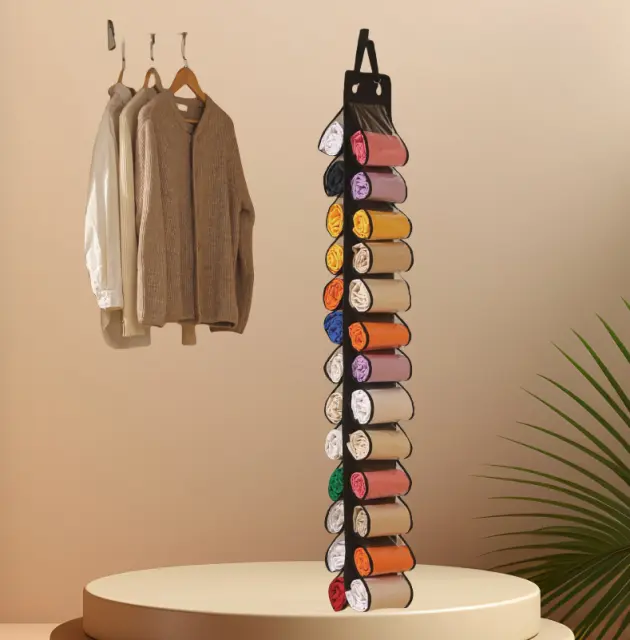 Vsestransko shranjevanje: Ta večnamenski viseči organizator ni samo za spodnje perilo! Uporabite ga za shranjevanje nogavic, dodatkov, nakita, šalov, pripomočkov za ustvarjanje ali drugih majhnih predmetov, ki jih želite imeti organizirane in na dosegu roke. 26 posameznih predelkov zagotavlja dovolj prostora za različne predmete, zaradi česar je vsestranska rešitev za shranjevanje za vsak prostor v vašem domu. Zaradi svoje prilagodljivosti je dragocen dodatek vašemu organizacijskemu sistemu.