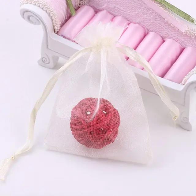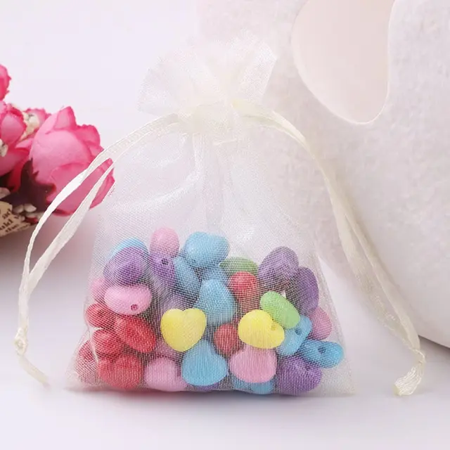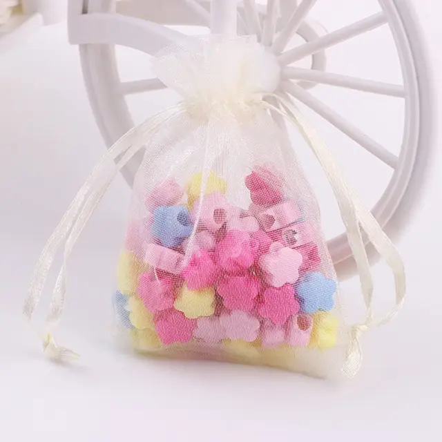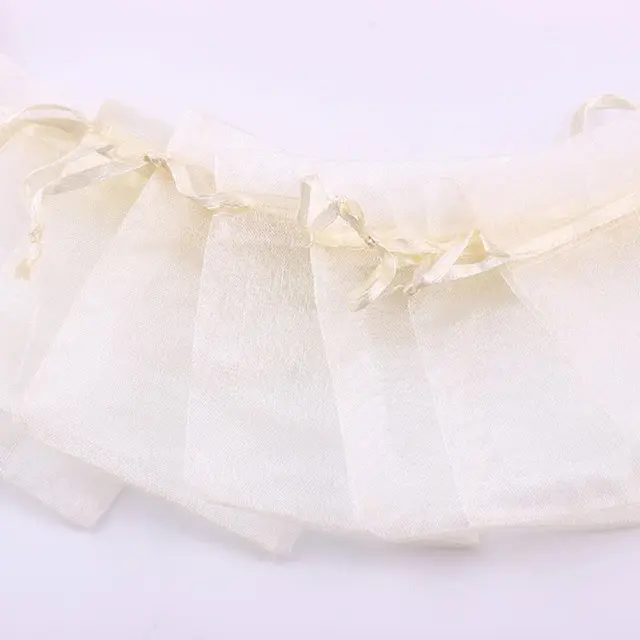 Lepe majhne organza vrečke z vrvico in vrvico. Lahko se znova in znova odpira in zapira, vsebina pa ostane varno na mestu. Popoln kot darilna vrečka ali vrečka za shranjevanje.