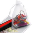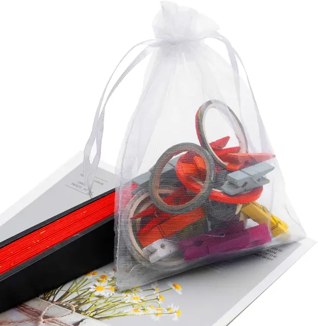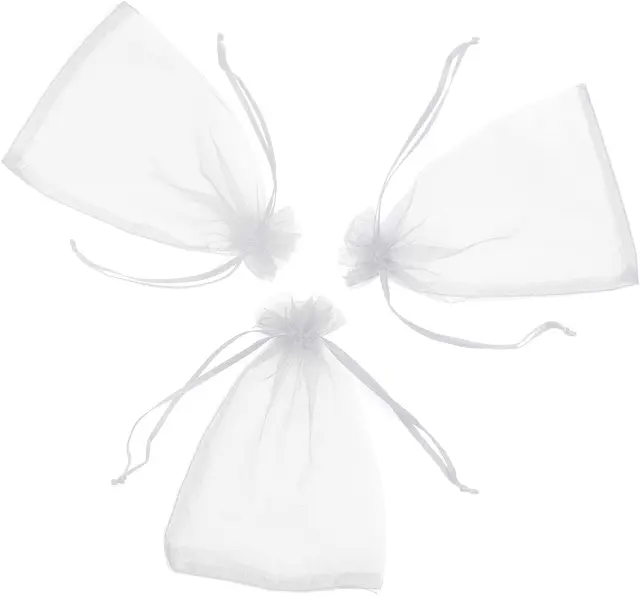 Lepe majhne organza vrečke z vrvico in vrvico. Lahko se znova in znova odpira in zapira, vsebina pa ostane varno na mestu. Popoln kot darilna vrečka ali vrečka za shranjevanje.