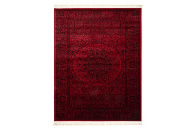 ORIENT 6039 preproga bordo / črna Okvir, rozeta, orientalski, z resicami 250x350 cm
