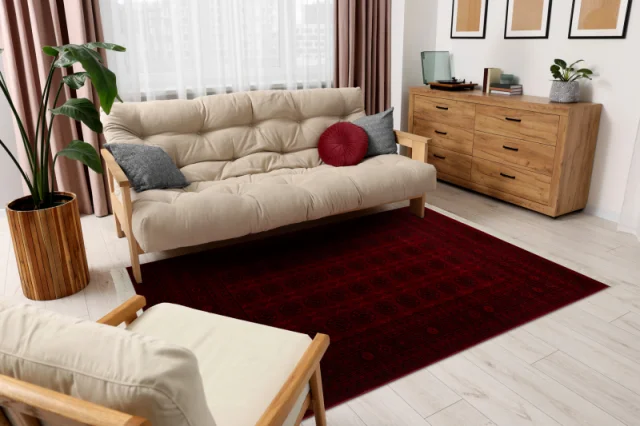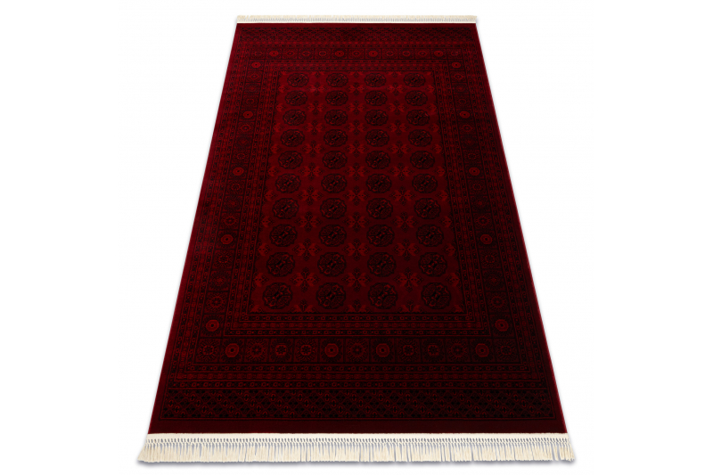 ORIENT 6889 preproga bordo / črna Buchara, okvir, orientalski, z resicami 100x200 cm