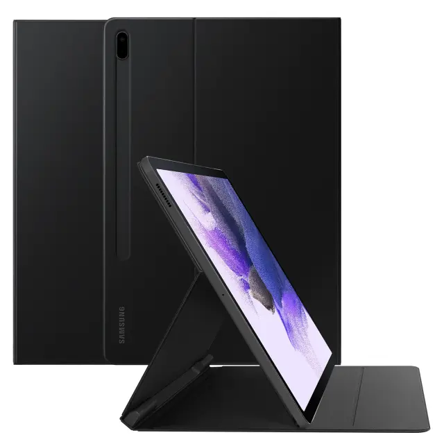 Originalni knjižni ovitek Samsung Tab S7 Plus 12.4 in Tab S7 FE za zašcito vašega tablicnega racunalnika in hkrati za vrhunski videz. Etui s podporo za vec položajev za ogled vaših datotek glede na kot po vaši izbiri.