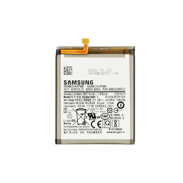 Originalna Samsung baterija za Samsung Galaxy A41. Kapaciteta 3500mAh, popolnoma enaka originalni. Povrnite prvotno avtonomijo svojega pametnega telefona in izkoristite vse njegove funkcionalnosti. Varno polnilo, odporno na preobremenitev in pregrevanje.