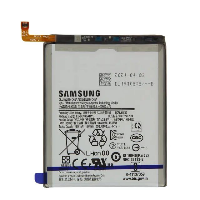Originalna Samsung baterija EB-BG996ABY za Samsung Galaxy S21 Plus. Kapaciteta 4800 mAh, popolnoma enaka originalu. Servisni paket: 100 % original Samsung, pripravljen za namestitev. Povrnite začetno avtonomijo pametnega telefona in uživajte v vseh njegovih funkcijah.