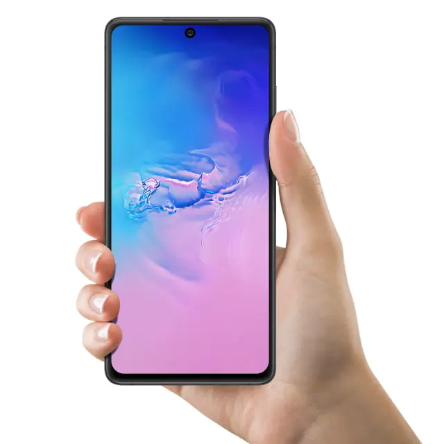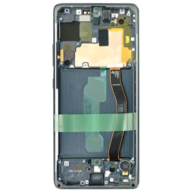 Original Samsung Galaxy S10 Lite LCD zaslon za zamenjavo vašega poškodovanega. Zaslon Samsung S10 Lite z namešcenimi in integriranimi povezovalnimi kabli, pripravljen za namestitev. Celoten blok je 100 % združljiv za iskanje funkcije dotika.