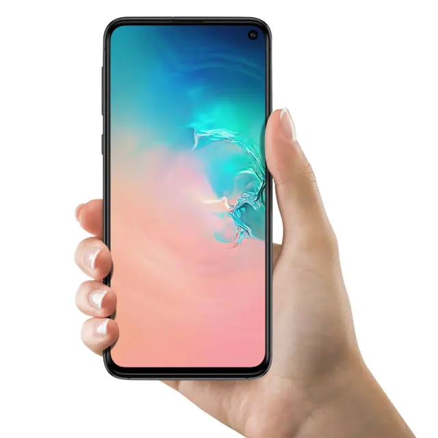 Original Samsung Galaxy S10e LCD zaslon za zamenjavo vašega poškodovanega. Zaslon Samsung Galaxy S10e z namešcenimi in integriranimi prikljucnimi kabli, pripravljen za namestitev. Celoten blok je 100 % združljiv za iskanje funkcije dotika.