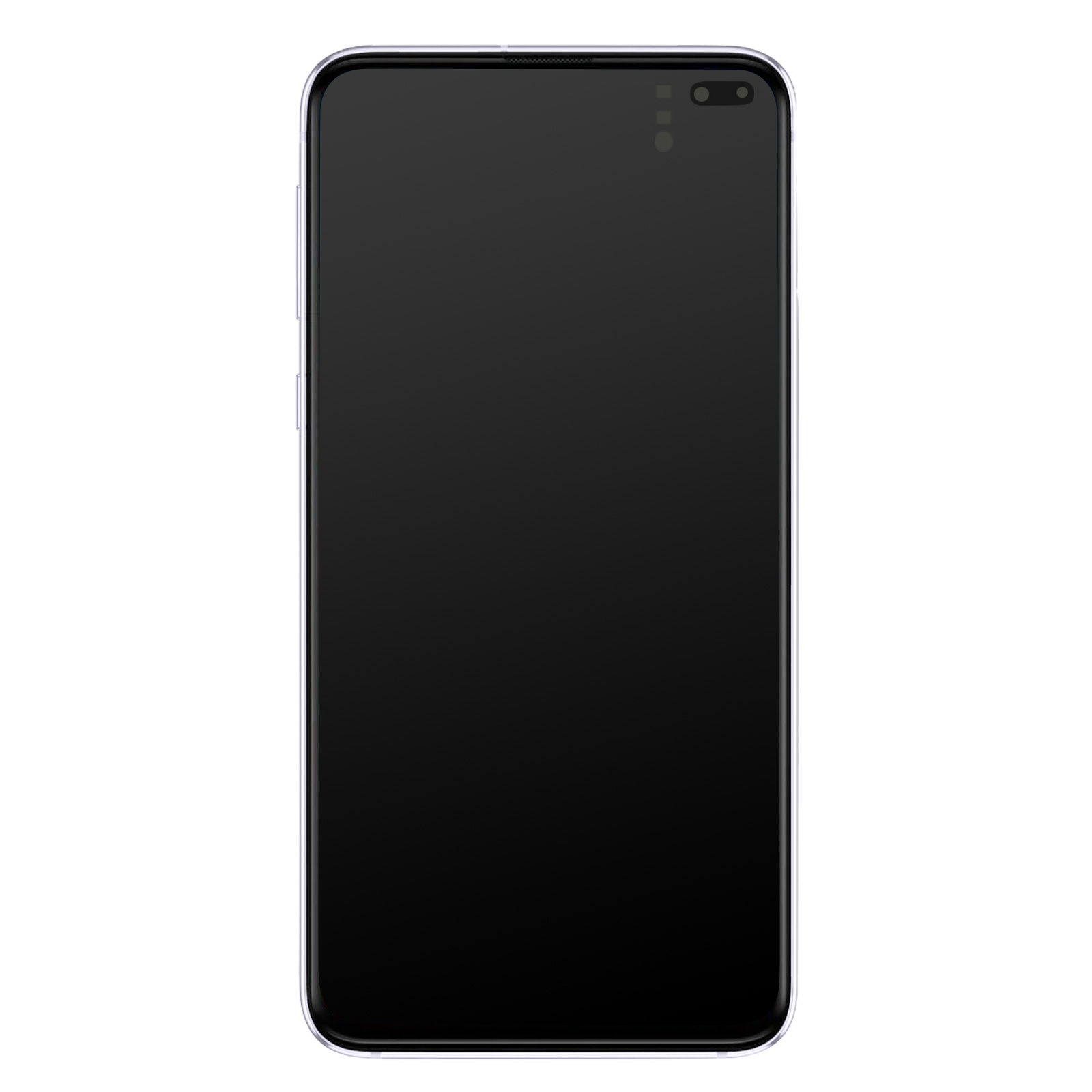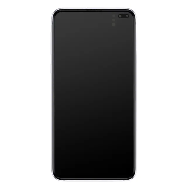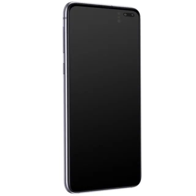 Original Samsung Galaxy S10 Plus LCD zaslon za zamenjavo vašega poškodovanega. Zaslon Samsung Galaxy S10 Plus z namešcenimi in integriranimi prikljucnimi kabli, pripravljen za namestitev. Celoten blok je 100 % združljiv za iskanje funkcije dotika.
