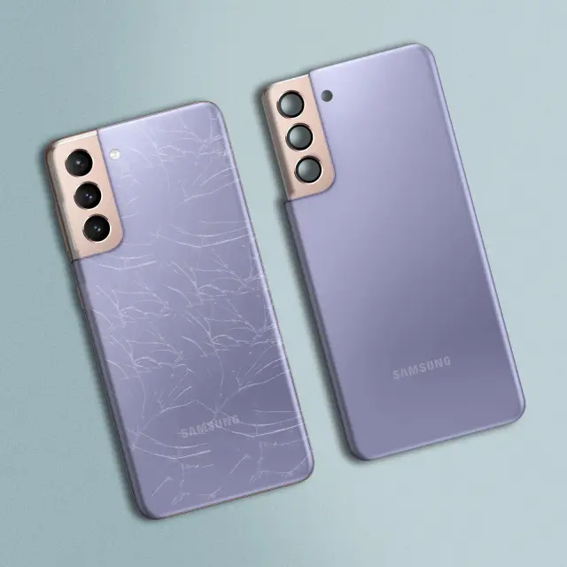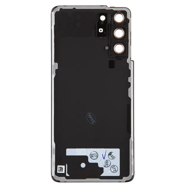 Originalni pokrov baterije za Samsung Galaxy S21, ki nadomesti obrabljen zadnji pokrov vašega mobilnega telefona. Uradni pokrov baterije za Samsung Galaxy S21 identicen originalu in z izrezi na kameri in bliskavici. Prisoten je tudi logotip.