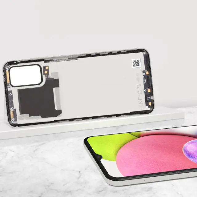 Originalni pokrov baterije za Samsung Galaxy A03s, ki nadomesti obrabljen zadnji pokrov vašega mobilnega telefona. Pokrov baterije identicen originalu, z izrezi na kameri in bliskavici.