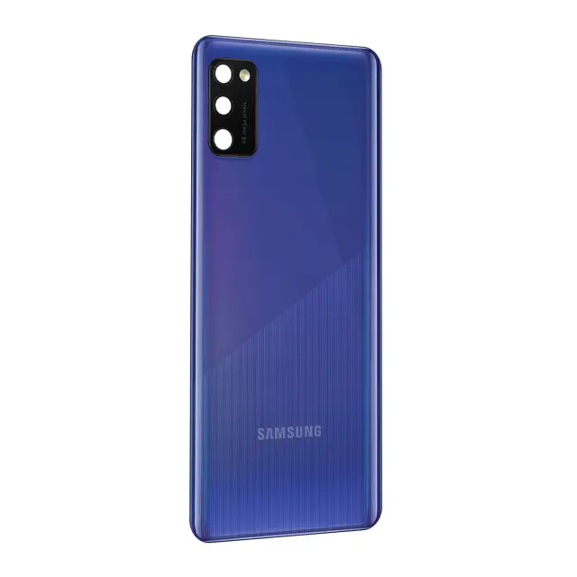 Originalni pokrov baterije za Samsung Galaxy A41, ki nadomesti obrabljen zadnji pokrov vašega mobilnega telefona. Uradni pokrov baterije Samsung Galaxy A41 identicen originalu in z izrezi na kameri in bliskavici. Prisoten je tudi logotip.