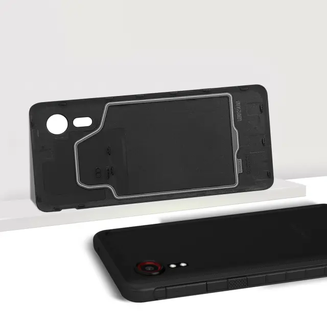 Originalni pokrov baterije za Samsung Galaxy Xcover 5, ki nadomesti obrabljen zadnji pokrov vašega mobilnega telefona. Pokrov baterije identicen originalu, z izrezi na kameri in bliskavici.