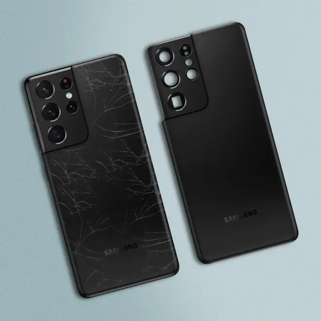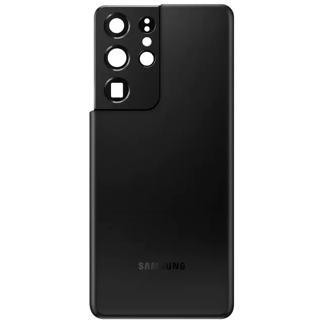 Originalni pokrov baterije za Samsung Galaxy S21 Ultra, ki nadomesti obrabljen zadnji pokrov vašega mobilnega telefona. Uradni pokrov baterije za Samsung S21 Ultra identicen originalu in z izrezi na kameri in bliskavici. Prisoten je tudi logotip.