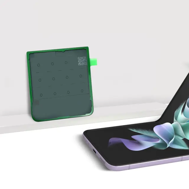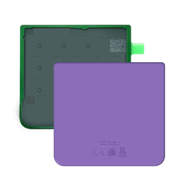 Originalni pokrov baterije za Samsung Galaxy Z Flip 3, ki nadomesti obrabljen zadnji pokrov vašega mobilnega telefona. Pokrov baterije identicen originalu, z izrezi na kameri in bliskavici.