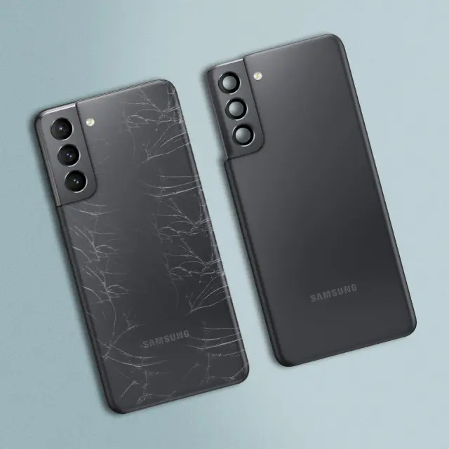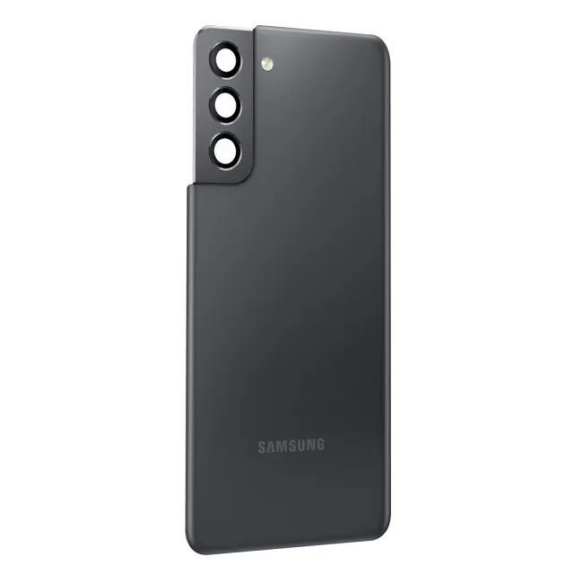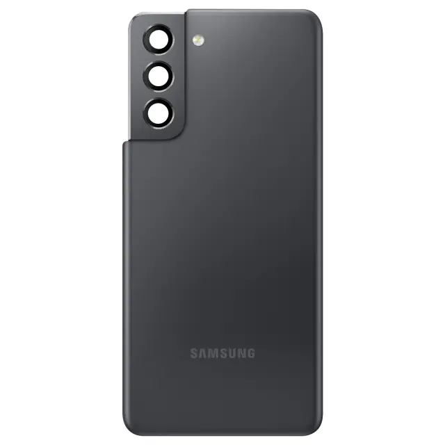 Originalni pokrov baterije za Samsung Galaxy S21, ki nadomesti obrabljen zadnji pokrov vašega mobilnega telefona. Uradni pokrov baterije za Samsung Galaxy S21 identicen originalu in z izrezi na kameri in bliskavici. Prisoten je tudi logotip.