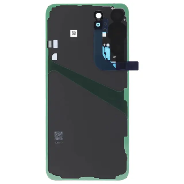 Originalni Samsung Galaxy S22 Plus crn pokrov baterije za zamenjavo obrabljenega ali zlomljenega zadnjega pokrova vašega mobilnega telefona. Zadnji pokrov identicen originalu z zašcitnim objektivom kamere in bliskavice.