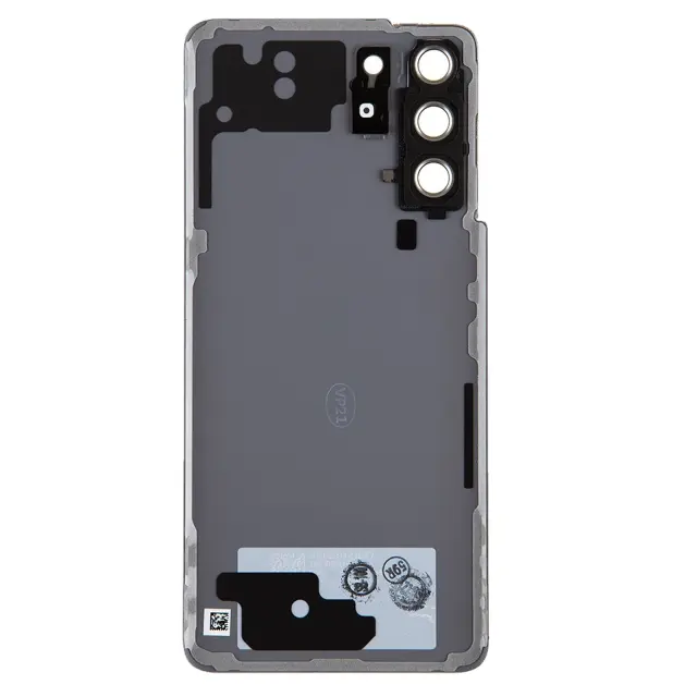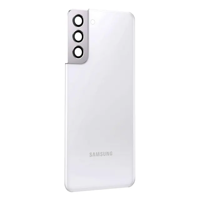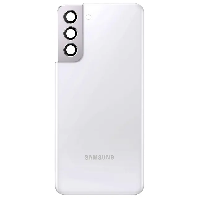 Originalni pokrov baterije za Samsung Galaxy S21, ki nadomesti obrabljen zadnji pokrov vašega mobilnega telefona. Uradni pokrov baterije za Samsung Galaxy S21 identicen originalu in z izrezi na kameri in bliskavici. Prisoten je tudi logotip.