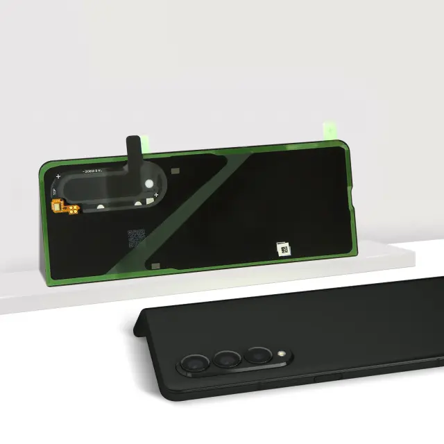 Originalni pokrov baterije Samsung Galaxy Z Fold 3, ki nadomesti obrabljen zadnji pokrov vašega mobilnega telefona. Pokrov baterije identicen originalu, z izrezi na kameri in bliskavici.