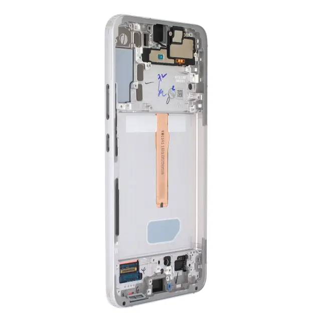 Bel Samsung Galaxy S22 Plus LCD zaslon in zaslon na dotik. Originalni Samsung del, ki vsebuje LCD zaslon in zaslon na dotik. Ta paket vam omogoca, da poišcete nov zaslon, saj se prvi dan lastnosti zaslona ohranijo.