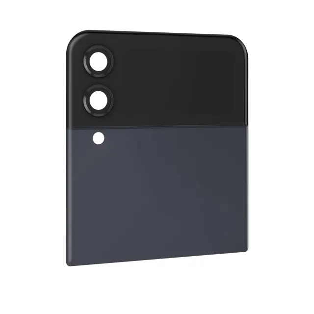 Originalni Samsung Galaxy Z Flip 4 Bespoke Edition polnocno modro zgornje zadnje steklo za zamenjavo obrabljenega ali zlomljenega zgornjega zadnjega dela vašega mobilnega telefona. Pokrov baterije identicen originalu z zunanjim zaslonom. Preprosta in enostavna namestitev.