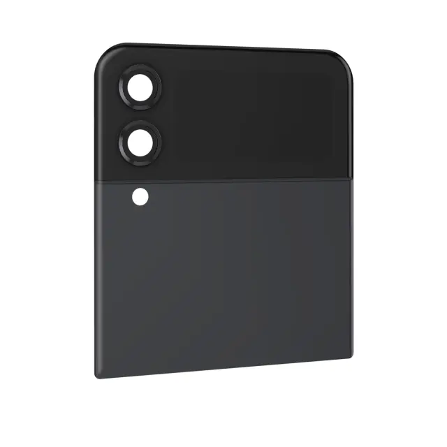 Originalno grafitno zgornje zadnje steklo Samsung Galaxy Z Flip 4 za zamenjavo obrabljenega ali zlomljenega zgornjega zadnjega dela vašega mobilnega telefona. Pokrov baterije identicen originalu z zunanjim zaslonom. Preprosta in enostavna namestitev.