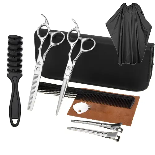 Ostra rezila za enostavno striženje: ostra rezila zagotavljajo močan in čist rez brez zatikanja ali puljenja, zaradi česar je vaše striženje gladko in učinkovito. Naše frizerske škarje Amortizer na koncu ročaja lahko učinkovito zmanjša obrabo in hrup, ki ga povzroči trk ročaja.