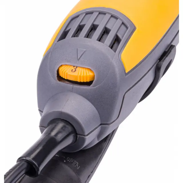 Poleg tega je naprava opremljena s povezavo, ki omogoča povezavo s sistemom za izpiranje (vključno z industrijskimi sesalniki), ta vrsta sistemov bistveno zmanjša prah, ki nastane med delom z napravo.