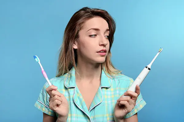 Električna ščetka: Deluje z rotacijskim ali oscilacijskim gibanjem glave ščetke, ki premika ščetine naprej in nazaj ali v krožnih gibih. Ta vrsta gibov mehansko odstranjuje zobne obloge in ostanke hrane.