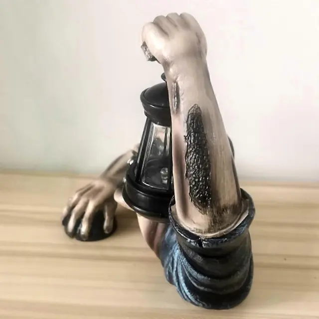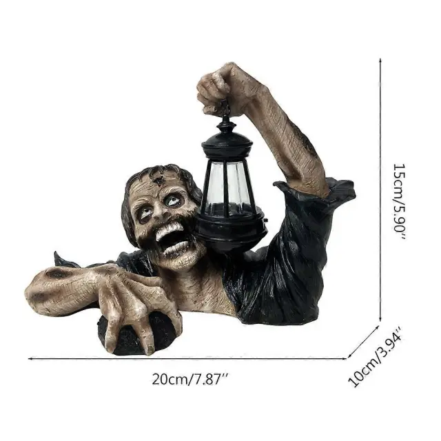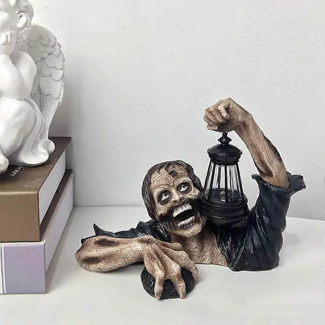 Ostuden kip zombija z lučko luči iz smole, vrtna skulptura, groza za zunanjo teraso, dvorišče, travnik, rekvizit za zabavo za noč čarovnic