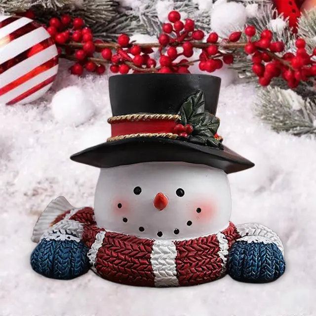 Osvetljena miniaturna figurica božičnega snežaka Majhna smolnata skulptura Prisrčen božič