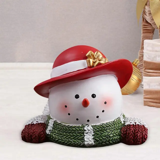 Osvetljena miniaturna figurica božičnega snežaka Majhna smolnata skulptura Prisrčen božič